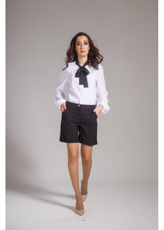 офисная блузка с бантом контрастного черного цвета