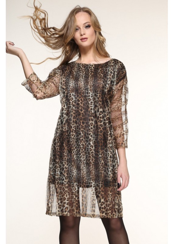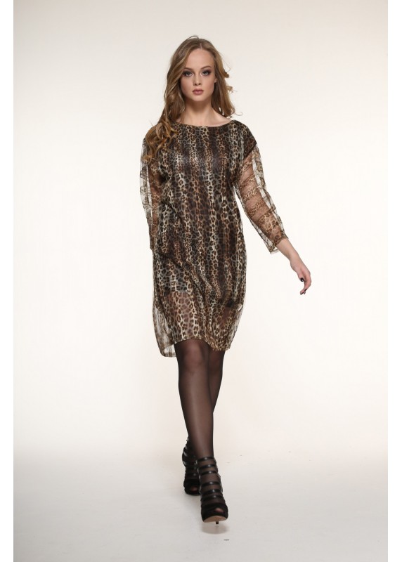 Нарядное платье из сетки с леопардовым дизайном, на подкладке, сзади разрез, длина изделия 164- 90, 170- 97см, длина рукава от горловины 164- 50, 170- 53