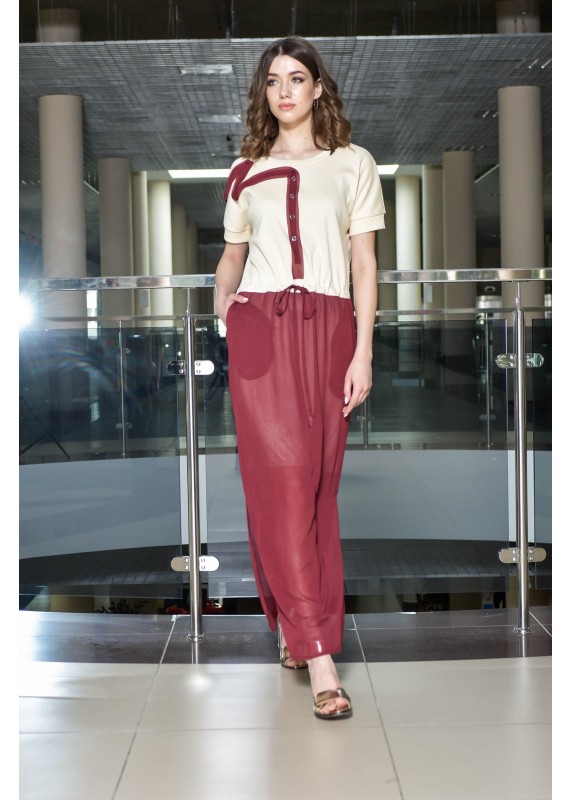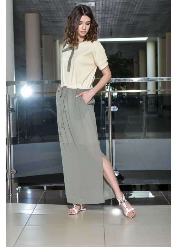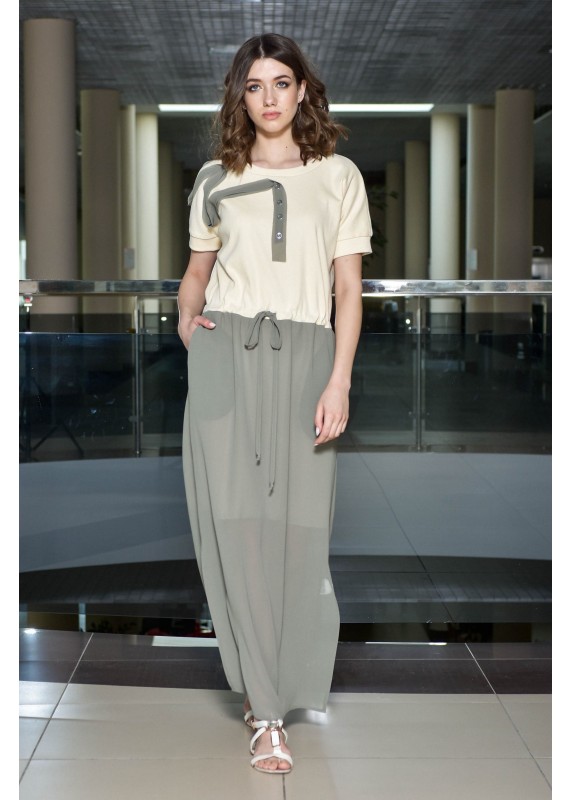 Летнее платье с приятным трикотажным верхом и летящим шифоновым низом.На полочке дизайнерский декор из шифона. На талии удобная регулируемая кулиска со шнурками. По боковым швам есть карманы и разрезы.Длина изделия на рост 164-134см, на рост 170-141 см.Цвет:бордо, серо-оливковы, темно-сини