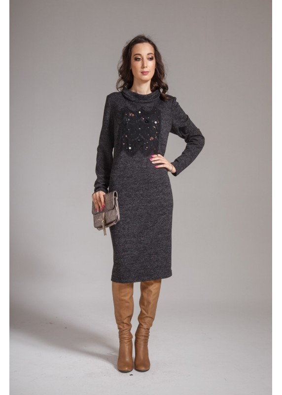 трикотажное платье с дизайнерской аппликацией на груди