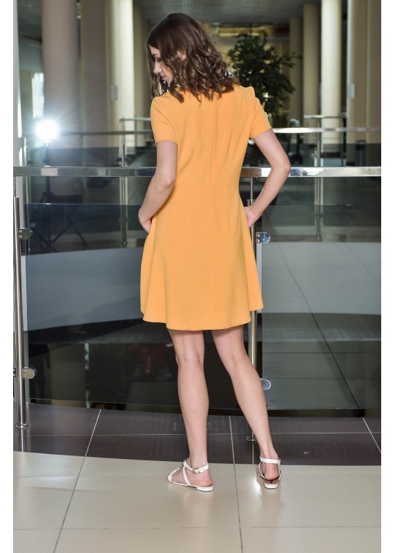 Стильное трикотажное платье. В красивом жёлтом цвете. Длина изделия на рост 164-85 см, на рост 170-91см.