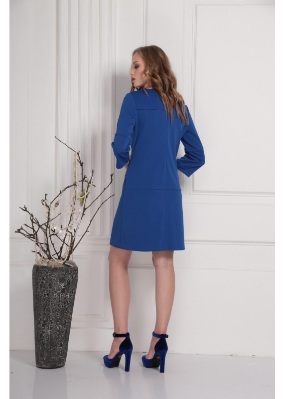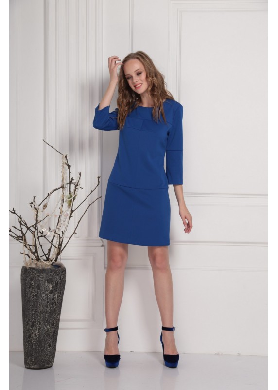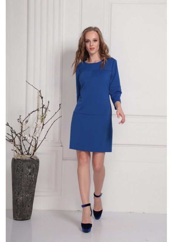 Лаконичное приятное платье с интересными конструкторскими подрезами. Застёжка на потайную тесьму-молнию по спинке. На рост 164 длина платья составляет 89 см, длина рукава платья 45 см; на рост 170 - 94 см и 47 см соответственно.