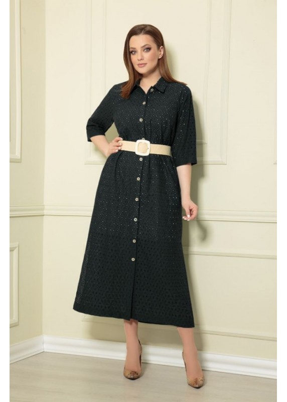 Стильное платье - рубашка из хлопкового шитья. Силуэт изделия прямой, рукав рубашечного типа длиной 3/4. В боковых швах функциональные карманы и разрезы по низу. Центральная бортовая застежка на петли - пуговицы. По спинке кокетка, переходящая на полочку. К платью прилагается стильный ремень - резинка под натуральный лен с оригинальной пряжкой. Платье на подкладке