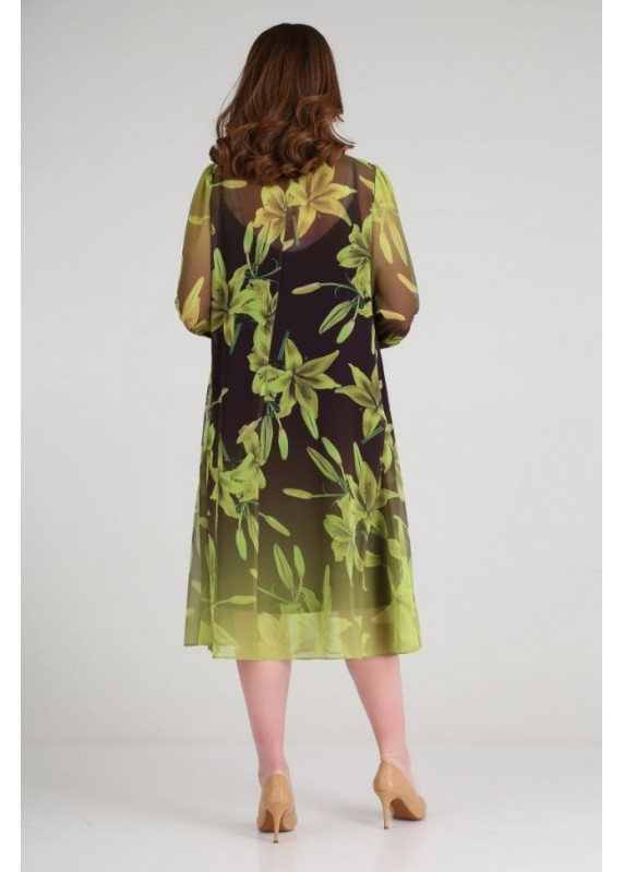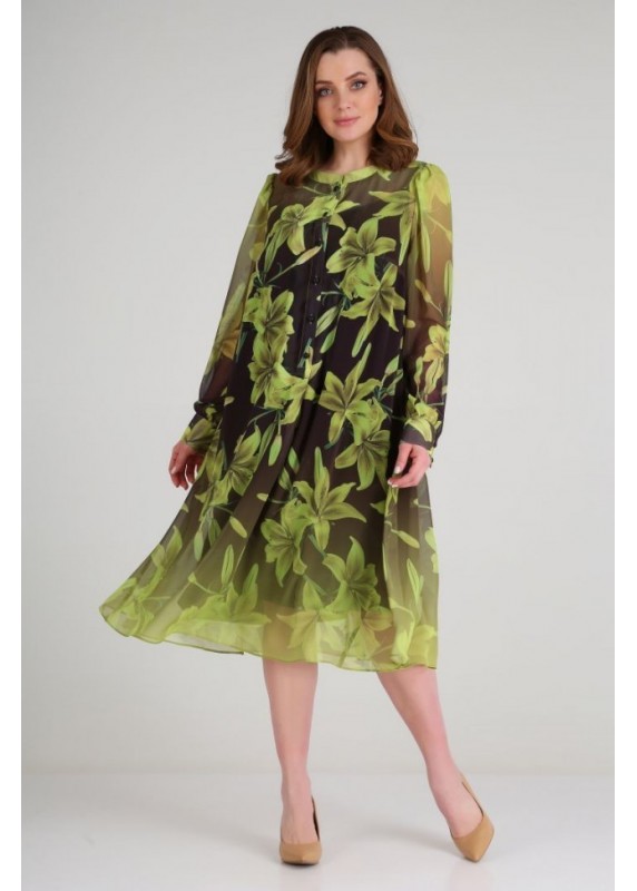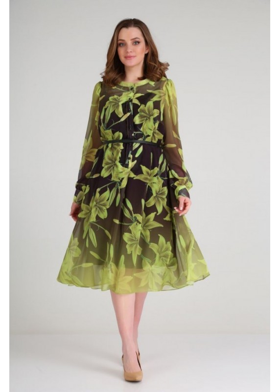 Женственное платье из струящейся ткани подойдет для обладательниц любого типа фигуры. Силуэт прямой, расширенный книзу. Застежка спереди на цельнокроеную планку и петли-пуговицы. В конце планки складка. Горловина обработана широкой бейкой. Рукав втачной, длинный, на манжете. Манжет на две пуговицы. По окату рукава сборка. Нижняя часть платья расширена по бокам клиньями. Длина платья midi. В комплекте к платью прилагается пояс.
